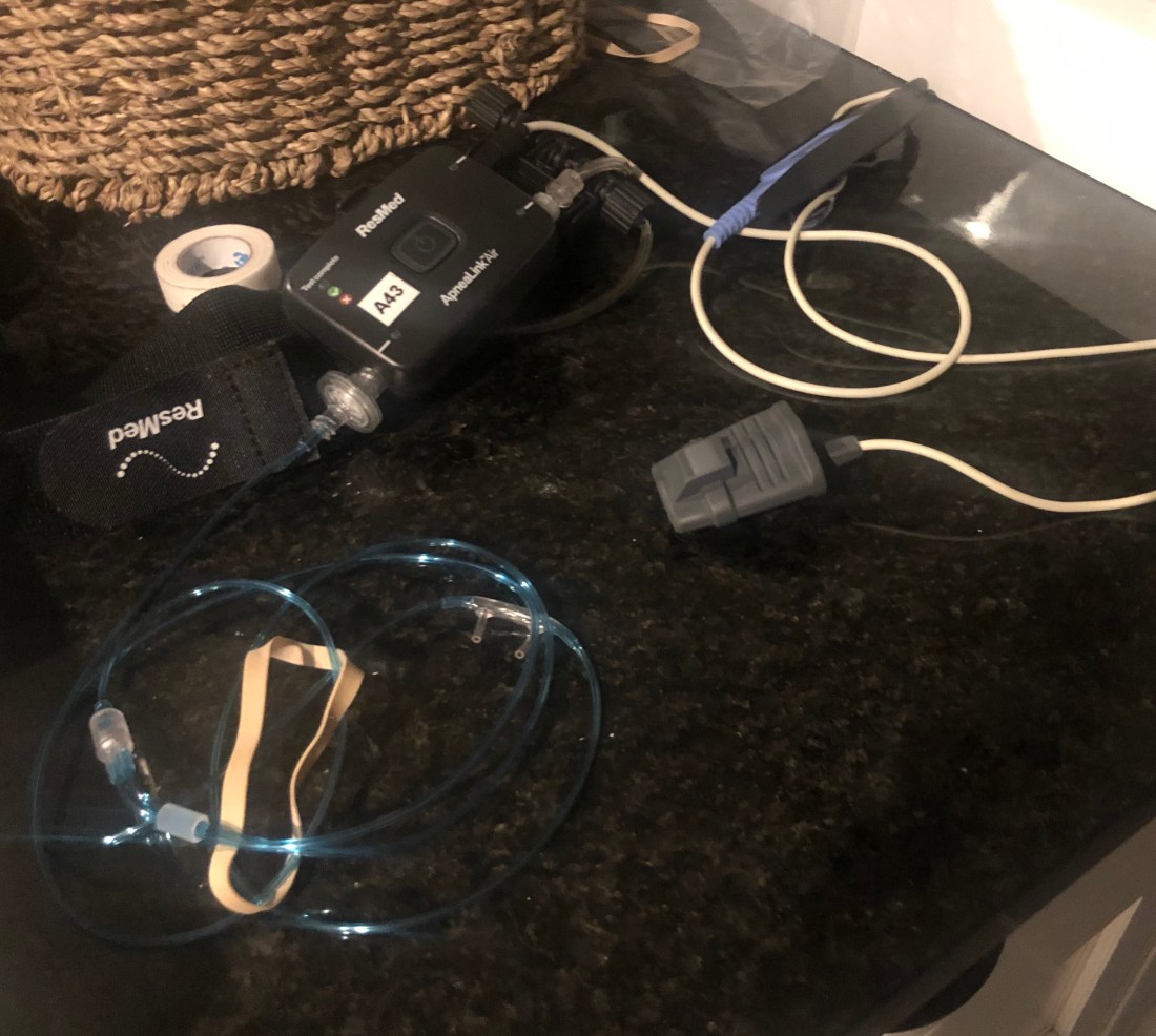 Two nights ago I had to wear this crazy mess of equipment. It measured my heart rate and my breathing quality during my slumber.